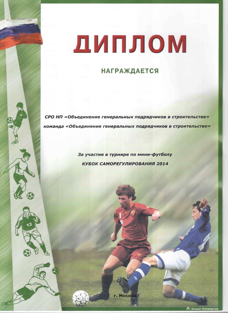 Команда достойно выступила в турнире по мини-футболу «Кубок саморегулирования - 2014», который состоялся 26 июля на Малой спортивной арене стадиона «Локомотив». Мероприятие традиционно проводят Национальное объединение строителей (НОСТРОЙ). За четыре года турнир превратился в игру, объединяющую не только строителей, но и проектировщиков, изыскателей, представителей бизнеса и государственных структур.