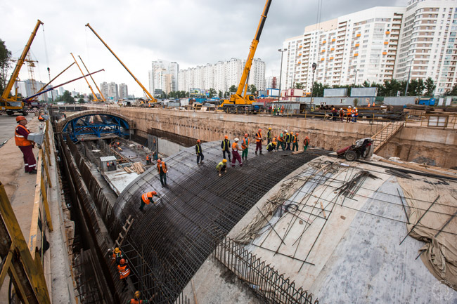 Тем временем начались работы по устройству свода станции «Тропарево» с помощью двух передвижных опалубок.